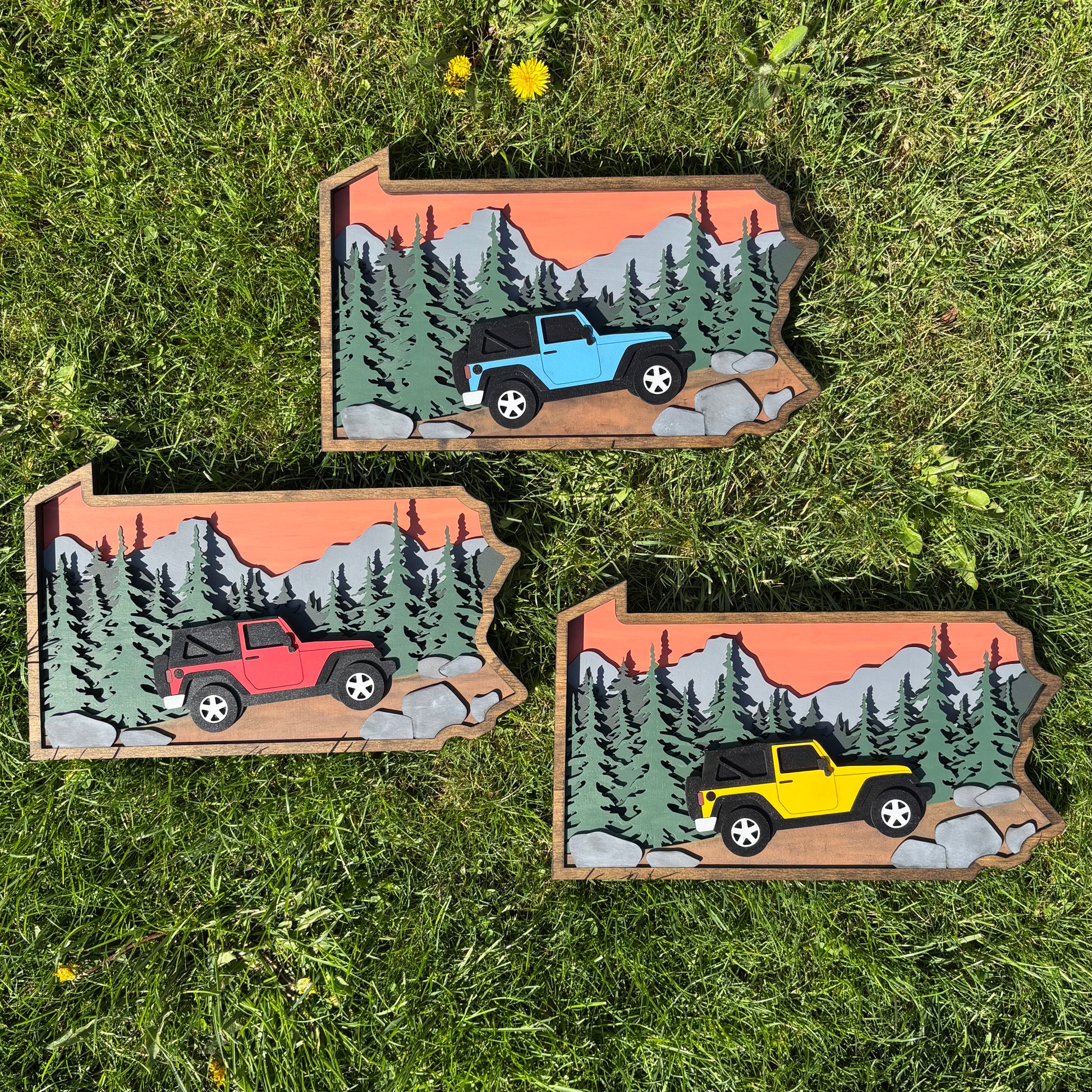 3 - PA framed large off road scenes, 14.5 x 8.5”h (suggested retail value $35)